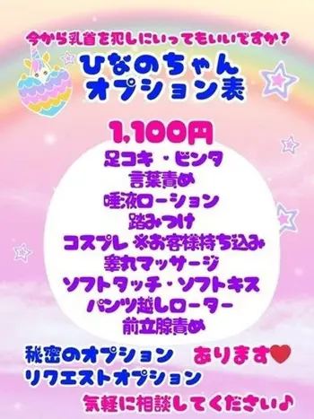ひなのちゃんとなら、日常を忘れて夢中になれる刺激的なリフレッシュタイムを味わえることでしょう。