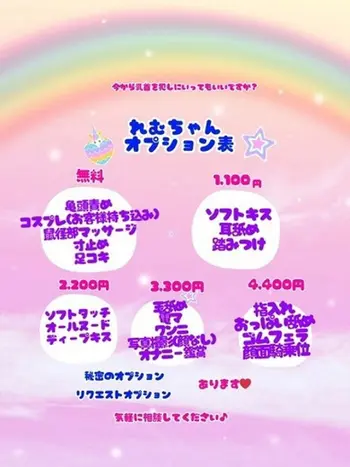 初めてお会いしたその瞬間から、れむの持つ柔らかな空気感に、自然と肩の力が抜けてしまうはずです。ふんわりとした笑顔と、人懐っこい距離感がとにかく心地よく、気づけば「ここに来てよかった」と思わせてくれる女の子。お話し好きで聞き上手なので、会話が得意じゃない方でも、不思議と時間があっという間に感じられます。「ちょっとオタク気質なんです」と照れながら笑う姿も、れむならではの愛嬌です。